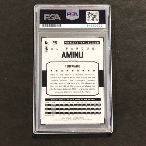 Up for sale is a 2015-16 NBA Hoops #25 signed by Al-Farouq Aminu. The autograph of Al on this card was authenticated by a team of experts at PSA/DNA Authentication Services (PSA/DNA) and encapsulated so you can rest assured you are purchasing the real deal.