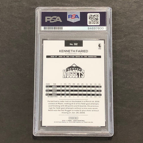 Up for sale is a 2016-17 NBA Hoops #92 card signed by Kenneth Faried who notably played for the Denver Nuggets. The autograph of Kenneth on this card was authenticated by a team of experts at PSA/DNA Authentication Services (PSA/DNA) and encapsulated so you can rest assured you are purchasing the real deal.