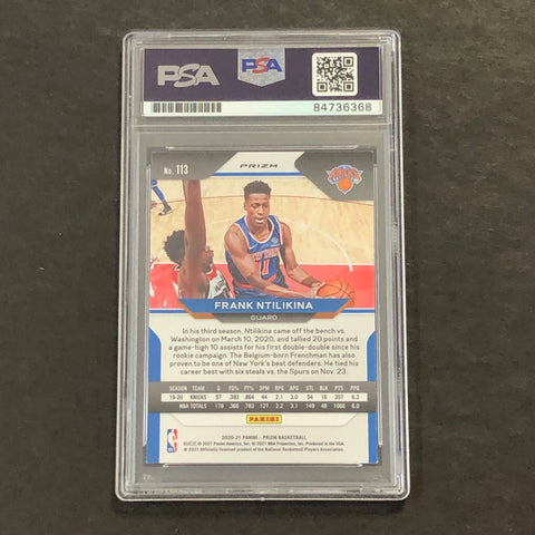 Up for sale is a 2020-21 Panini Prizm #113 card signed by Frank Ntilikina of the New York Knicks. The autograph of Frank on this card was authenticated by a team of experts at PSA/DNA Authentication Services (PSA/DNA) and encapsulated so you can rest assured you are purchasing the real deal.
