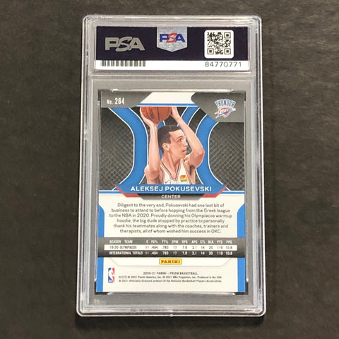 Up for sale is a 2020-21 Panini Prizm #264 card signed by Aleksej Pokusevski. The autograph of Aleksej on this card was authenticated by a team of experts at PSA/DNA Authentication Services (PSA/DNA) and encapsulated so you can rest assured you are purchasing the real deal.