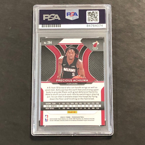 Up for sale is a 2020-21 Panini Prizm #294 card signed by PRECIOUS ACHIUWA, who notably played for the Miami Heat. The autograph of PRECIOUS on this card was authenticated by a team of experts at PSA/DNA Authentication Services (PSA/DNA) and encapsulated so you can rest assured you are purchasing the real deal.