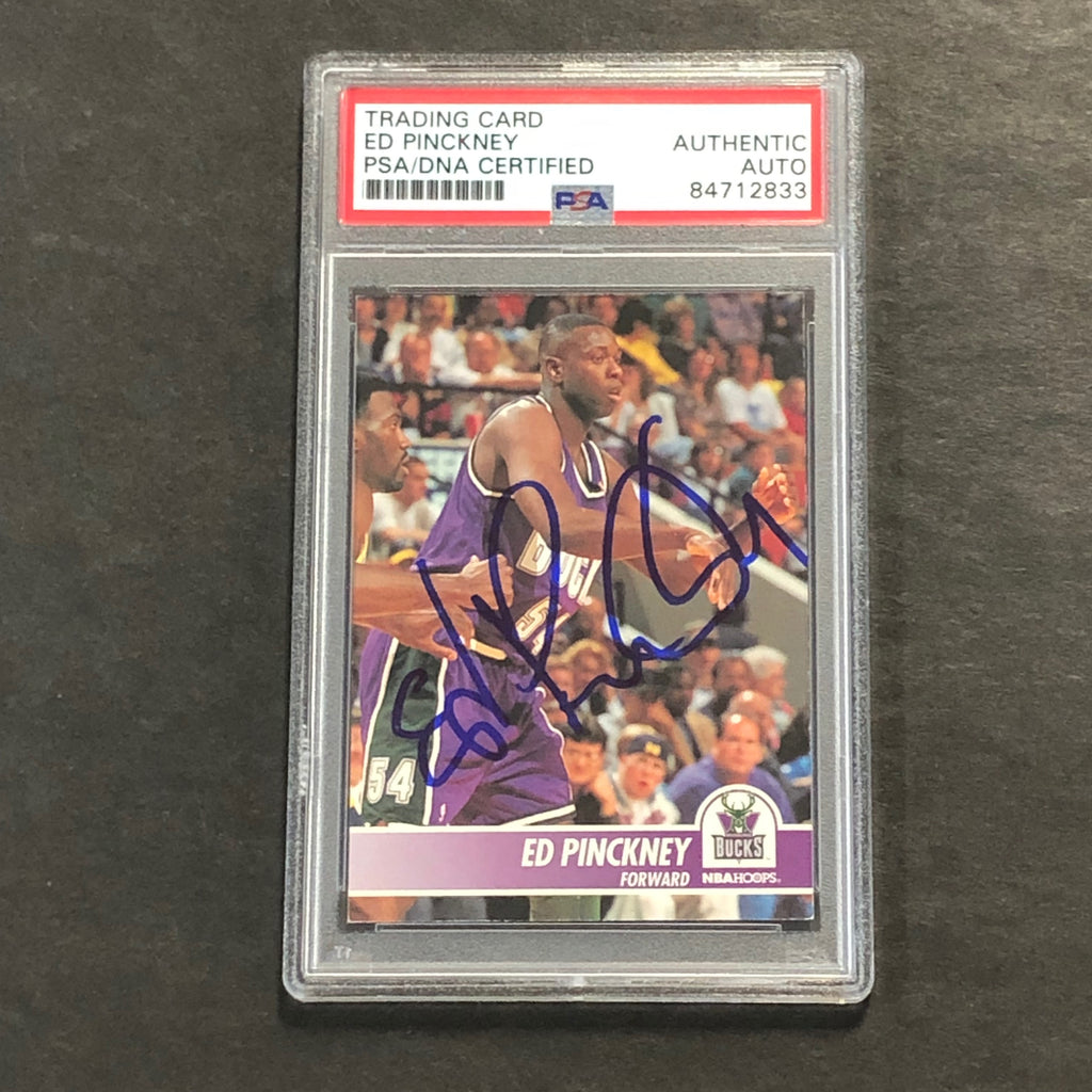 Up for sale is a 1994-95 NBA Hoops #348 card signed by Ed Pinckney who notably played for the Milwaukee Bucks. The autograph of Ed on this card was authenticated by a team of experts at PSA/DNA Authentication Services (PSA/DNA) and encapsulated so you can rest assured you are purchasing the real deal.