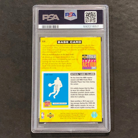 Up for sale is a 1996 Collectors Choice Stick-ums 1 Base Card #B30 Michael Jordan PSA NM 7 Bulls. This card has been professionally graded by PSA, forever solidifying its condition so you can buy with confidence.
