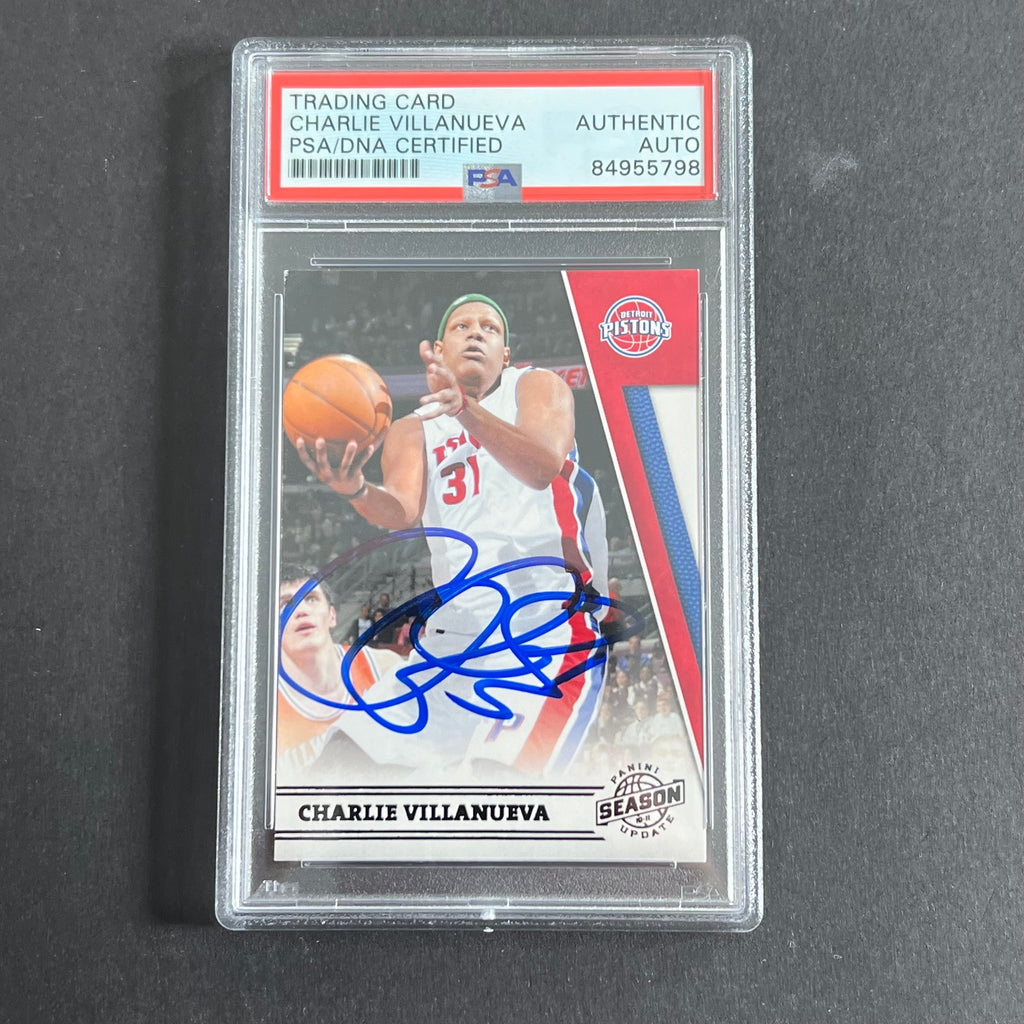 Up for sale is a 2011 Panini #48 card signed by Charlie Villanueva, who notably played for the Detroit Pistons. The autograph of Charlie on this card was authenticated by a team of experts at PSA/DNA Authentication Services (PSA/DNA) and encapsulated so you can rest assured you are purchasing the real deal.