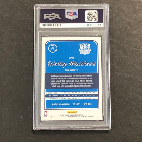 Up for sale is a 2016-17 Donruss #79 card signed by Wesley Matthews. The autograph of Wesley on this card was authenticated by a team of experts at PSA/DNA Authentication Services (PSA/DNA) and encapsulated so you can rest assured you are purchasing the real deal.