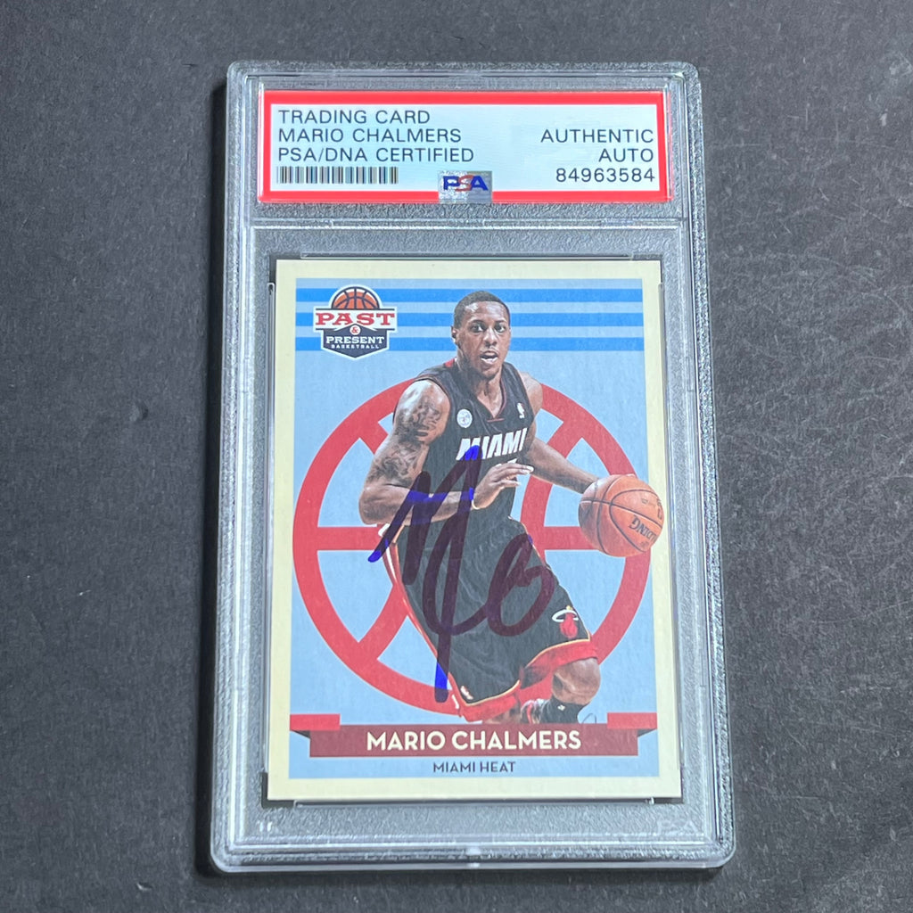 Up for sale is a 2012 NBA Lifetime #127 card signed by Mario Chalmers who notably played for the Miami Heat. The autograph of Mario on this card was authenticated by a team of experts at PSA/DNA Authentication Services (PSA/DNA) and encapsulated so you can rest assured you are purchasing the real deal.