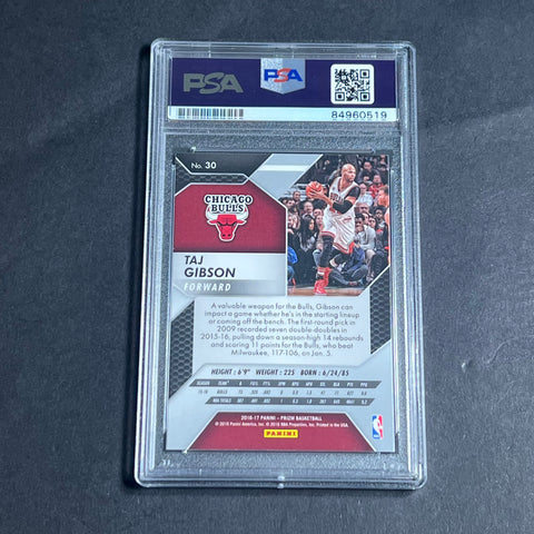 Up for sale is a 2016-17 Panini Prizm #30 card signed by Taj Gibson who notably played for the Minnesota Timberwolves. The autograph of Taj on this card was authenticated by a team of experts at PSA/DNA Authentication Services (PSA/DNA) and encapsulated so you can rest assured you are purchasing the real deal.