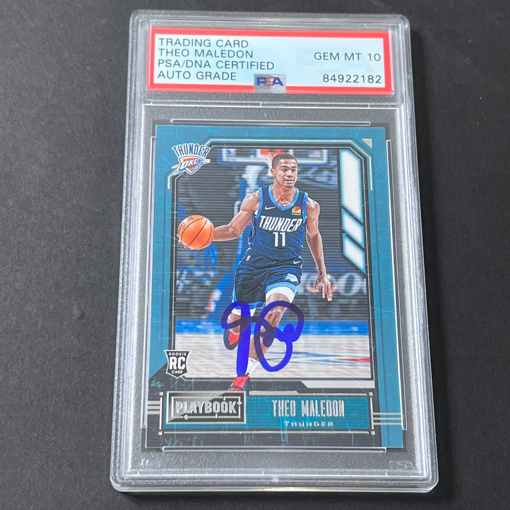 Up for sale is a 2020-21 Panini Playbook #175 card signed by Theo Maledon. The autograph of Theo on this card was authenticated by a team of experts at PSA/DNA Authentication Services (PSA/DNA) and encapsulated so you can rest assured you are purchasing the real deal.