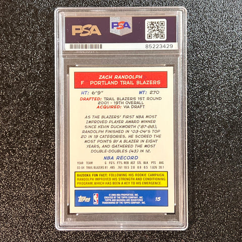 2004-05 Topps Bazooka #15 Zach Randolph Signed Card Auto PSA Slabbed Trailblazers
