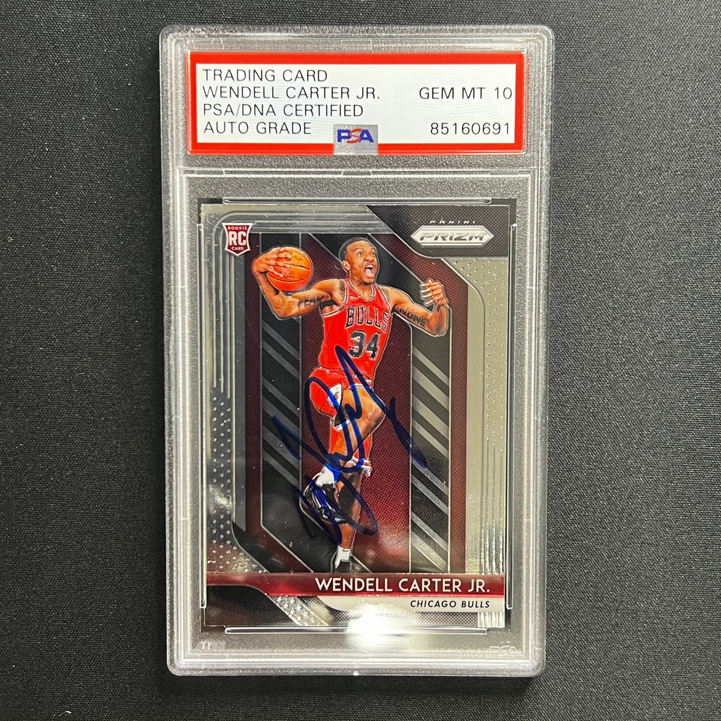 Up for sale is a 2018-19 Panini Prizm #80 signed by Wendell Carter Jr. The autograph of Wendell on this card was authenticated by a team of experts at PSA/DNA Authentication Services (PSA/DNA) and encapsulated so you can rest assured you are purchasing the real deal.