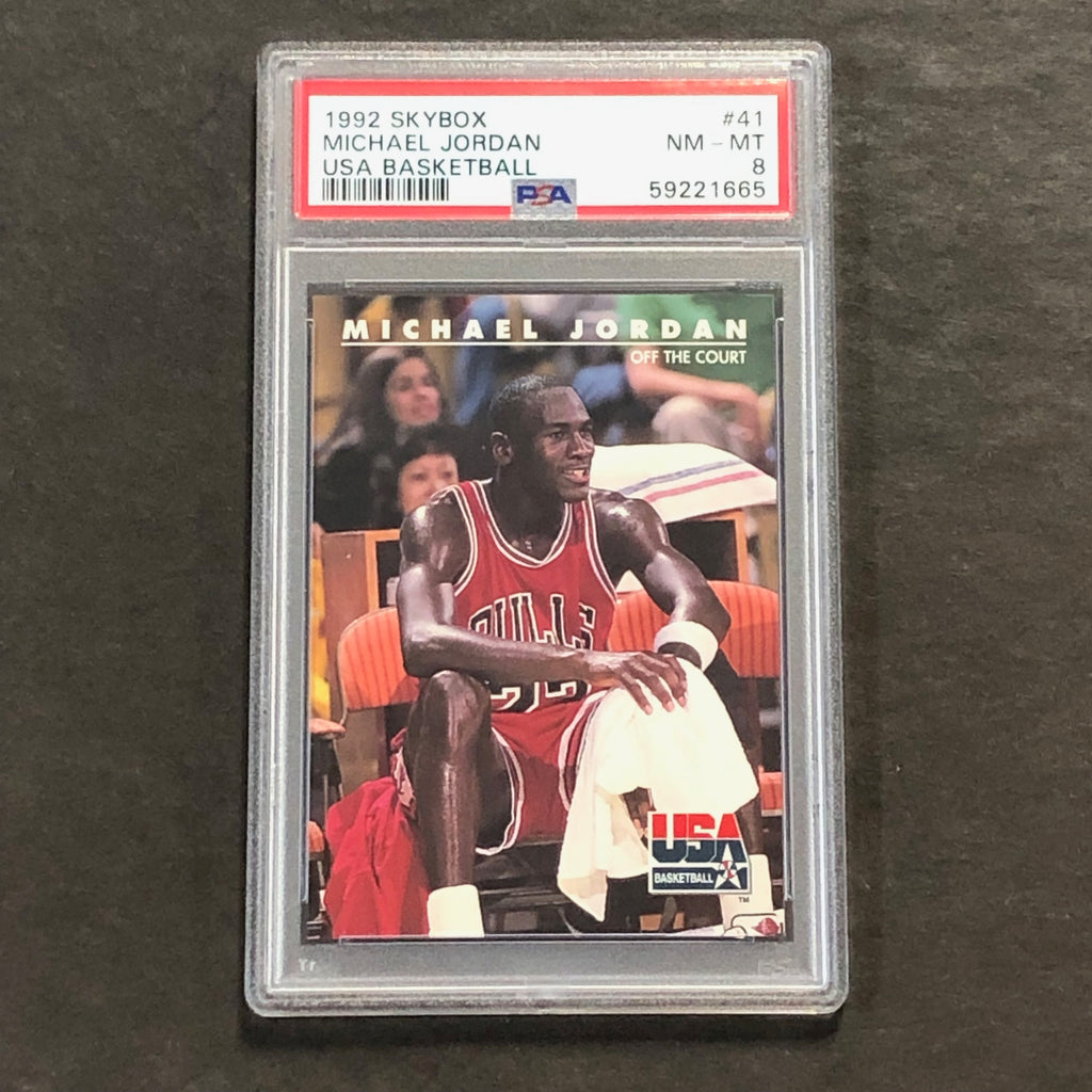 Up for sale is a 1992 Skybox USA Basketball #41 Michael Jordan PSA NM-MT 8 Bulls. This card has been professionally graded by PSA, forever solidifying its condition so you can buy with confidence.