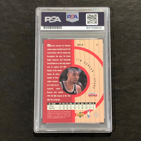 Up for sale is a 1998-99 Upper Deck Hardcourt #63 card signed by NBA legend, Tim Duncan who notably played for the San Antonio Spurs. The autograph of Tim on this card was authenticated by a team of experts at PSA/DNA and encapsulated so you can rest assured you are purchasing the real deal.