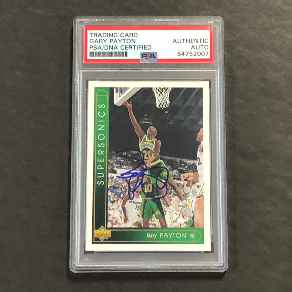 Up for sale is a 1992-93 Upper Deck #295 card signed by Gary Payton, who notably played for Seattle Supersonics. The autograph of Gary on this card was authenticated by a team of experts at PSA/DNA and encapsulated so you can rest assured you are purchasing the real deal.