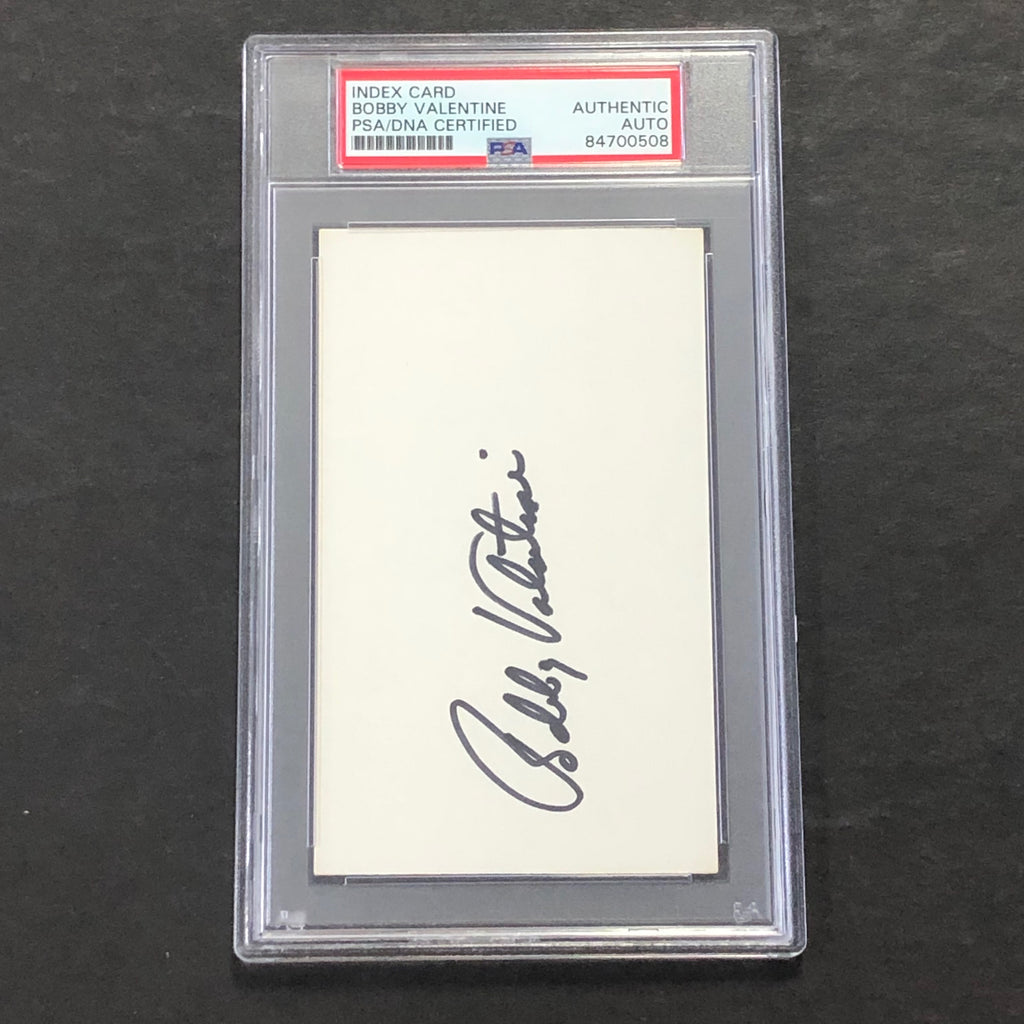 Up for sale is a slabbed 3x5 index card signed by former Baseball Player Bobby Valentine. The autograph of Bobby on this index card was authenticated by a team of experts at PSA/DNA and encapsulated so you can rest assured you are purchasing the real deal.